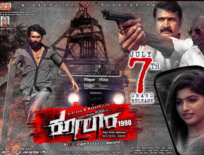 Kolar Movie Review: Kolar is a new movie in Sandalwood releasing on July 7th 2017. Kolar is Action-Thriller movie staring Yogesh(Yogi), Mahesh(Yogi’s Brother) and Adithya Menon. Naina Sarwar is playing main role besides Yogi. Kolar is movie which is based up on real life Incidence of Thangam. Thangam who was involved in more than 37 cases of murder, rape, robbery and theft cases in and around KGF(Kolar Gold Fields), Tamil Nadu and Andhra Pradesh. Kolar movie is released around more than 900 Screens in Karnataka. Kolar is place were Thangam had stayed and made his land mark. Kolar movie is written and directed by Aryaa M. Mahesh and produced by R. Lakshminarayana(Arya Films banner) where B R Hemanth Kumar composed music for Kolar movie.